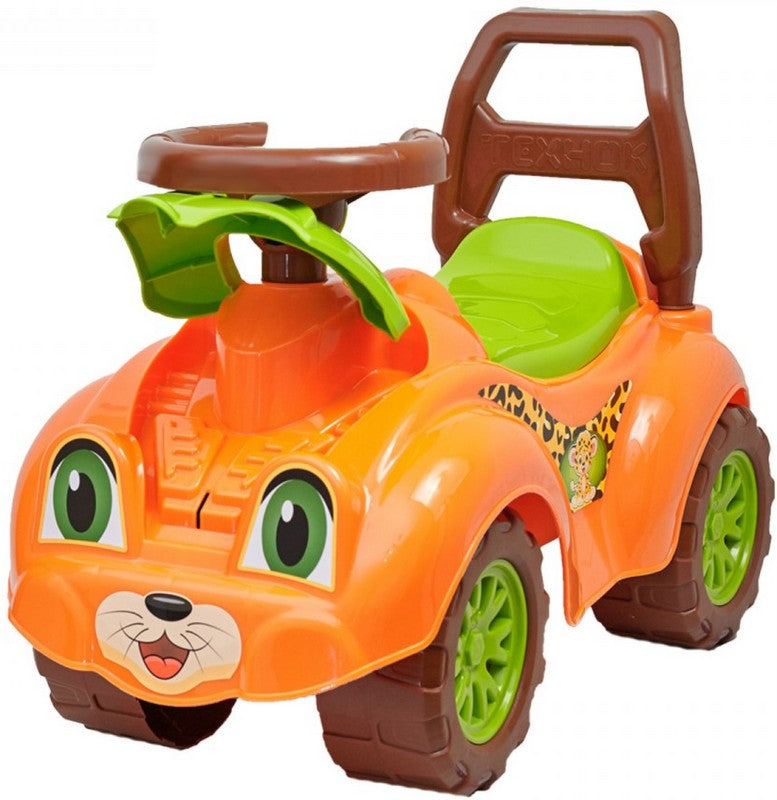 Детската кола  за яздене се отличава с оригинален автентичен дизайн, който е безопасен и ергономичен. Детската кола Технок е средство за активен отдих и развитие. Благодарение на леката и удобна конструкция, тя е идеална за разходки в парка или на открито. Яркият ѝ дизайн привлича вниманието и събужда интерес. С детската кола всяка разходка се превръща във вълнуващо приключение! Функционалността на детската кола е като на истинска: можете да погледнете под капака в двигателния отсек за ремонти. А има и място за пазаруване - има багажник и голямо отделение под седалката. Удобна облегалка поддържа детето по време на возене. Максимално натоварване - 20 кг. За деца от 1 година.