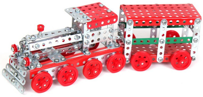 Constructor metalic 21 x 16 x 4 cu șuruburi și piulițe, unelte pentru construirea unui tren, 248 de piese, cu asistență pe YouTube