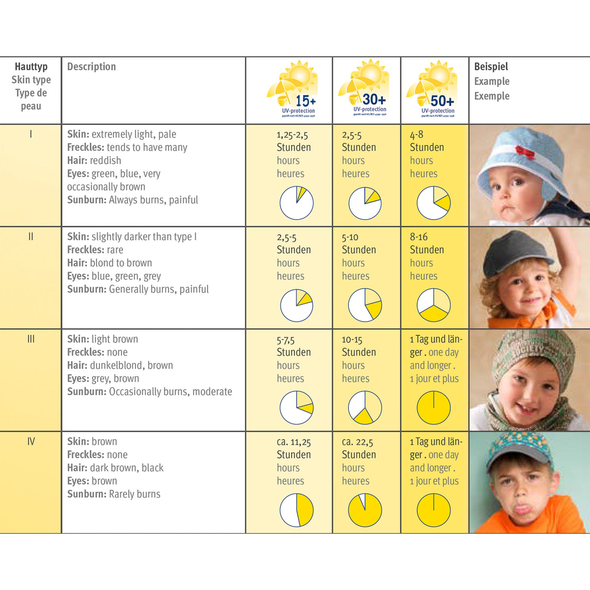 Детската кожа е много уязвима на слънцето, системата за защита на детето започва да функционира след 3-годишна възраст. При еднакво излагане на слънце ефектите върху детето са от 2 до 3 пъти по-значителни отколкото при възрастен. Затова е важно децата да бъдат добре защитени.