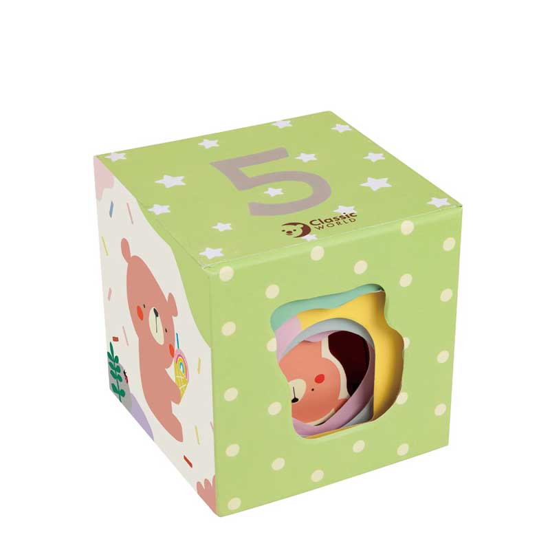 Кубчетата са декорирани с меки, приятни цветове и илюстрации в горска тематика – животни, растения, пеперуди, балони, сладолед, пчели и цветя. Визията е създадена така, че да грабне вниманието, без да го претоварва – спокойна, балансирана и подходяща за ранна детска възраст.