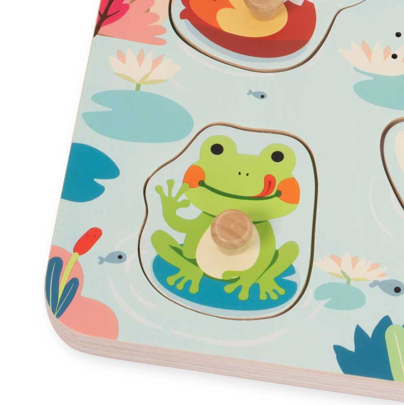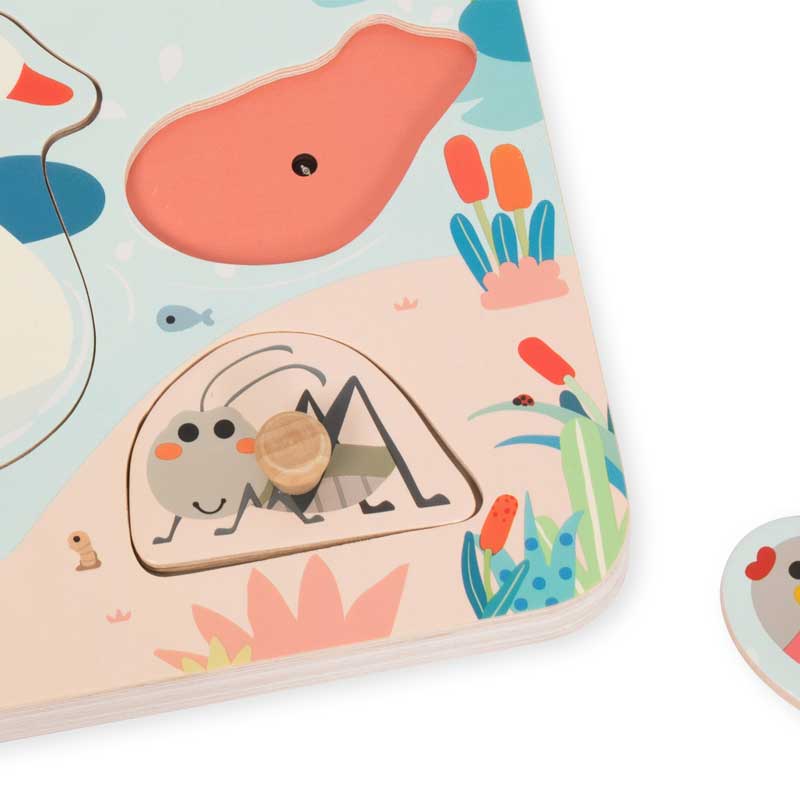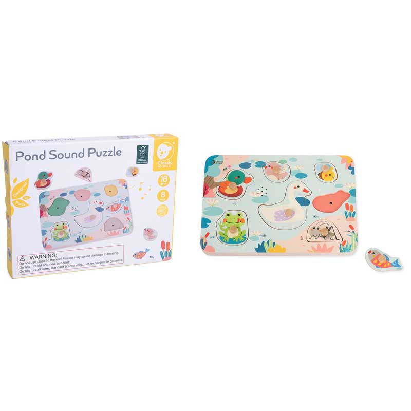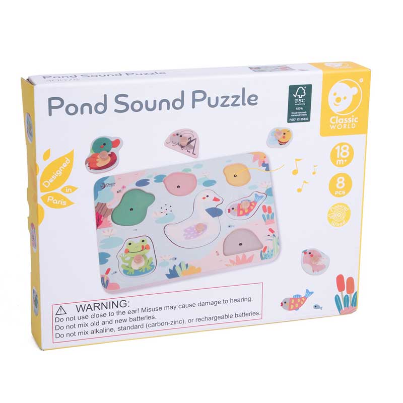Открийте вълшебния свят край езерото, където гъската и нейните приятели канят детето на игра, изпълнена със звуци, цветове и любопитни открития. Този дървен звуков пъзел на марката Classic World превръща ученето в истинско приключение, което стимулира сетивата и въображението на децата.