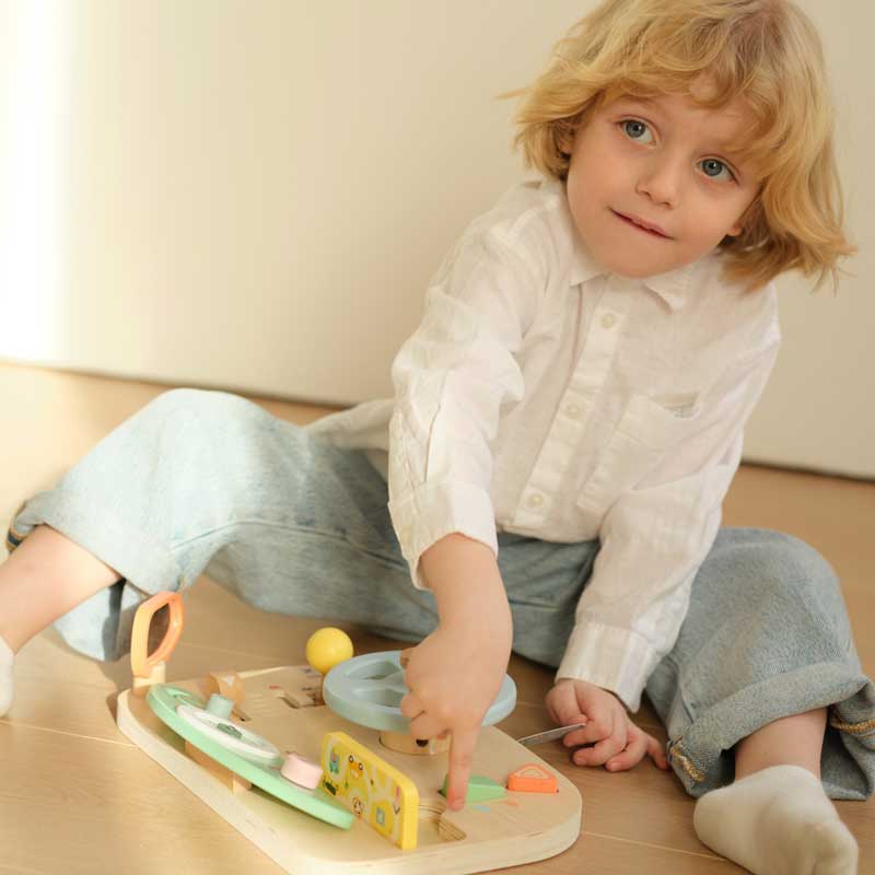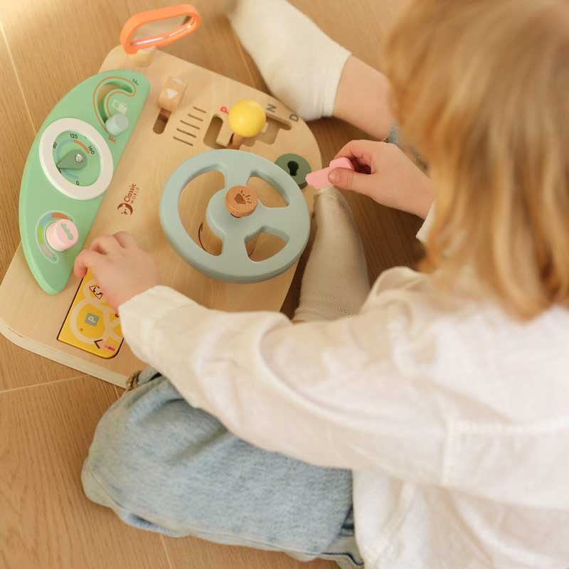 Превърнете всяка игра във вълнуващо пътешествие с многофункционалния дървен волан Classic World. Интерактивното автомобилно табло кани децата да се впуснат в ролеви игри като истински шофьори – да завъртят волана, да превключат скоростите и да „потеглят“ към нови приключения.