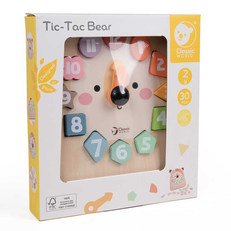 Дървеният часовник „Мечо“ на марката Classic World е забавен и интерактивен начин децата да се запознаят с времето, числата и дните от седмицата. Със своя симпатичен дизайн във форма на меченце и пъстри елементи, играчката превръща ученето в приятно преживяване, което стимулира любопитството и самостоятелната игра.