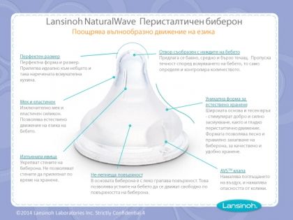 • клинично е доказано, че биберона NaturalWave™ поддържа кърменето и допринася за правилно захапване от страна на бебето
