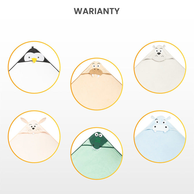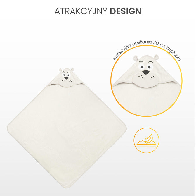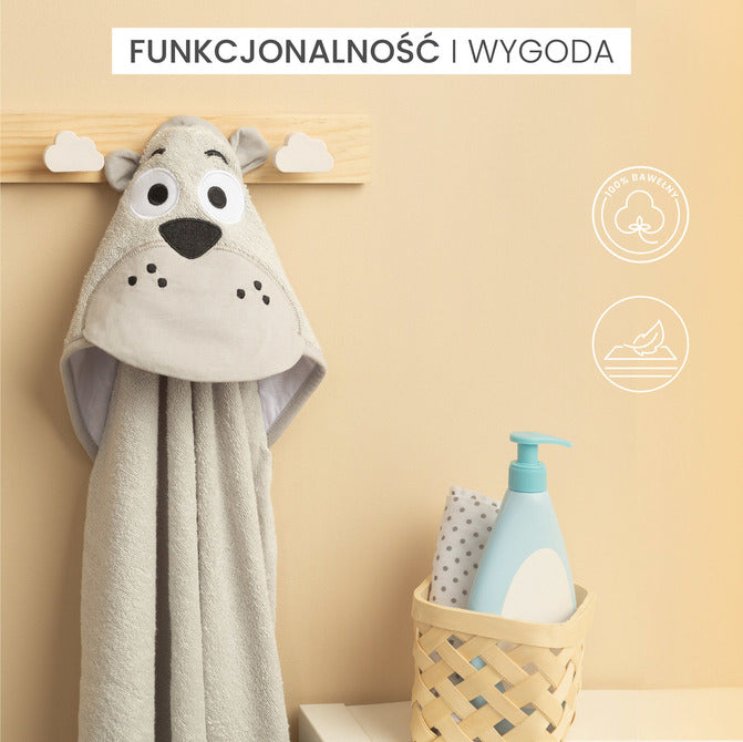 Gluga protejează capul copilului de frig și facilitează uscarea rapidă a părului. Decorațiunile cu motive animaliere atrag atenția și fac momentele de după baie și mai distractive.