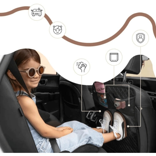 Открийте „ постелката за ритане“ – практично решение от SIPO , идеално за ежедневни и дълги пътувания с вашето дете. Този незаменим аксесоар не само ефективно предпазва тапицерията на автомобилната ви седалка от замърсявания, влага и ожулвания , но и помага да поддържате колата си подредена благодарение на два практични джоба. Тази универсална постелка за автомобилна седалка против ритане е подходяща за повечето модели автомобили и се монтира бързо. Изработена от висококачествена кожа и мрежа, тя е не само издръжлива, но и естетически приятна и лесна за почистване. Ако функционалността, комфортът и естетиката са важни за вас, защитната постелка за автомобилна седалка SIPO ще отговори на всички ваши очаквания.