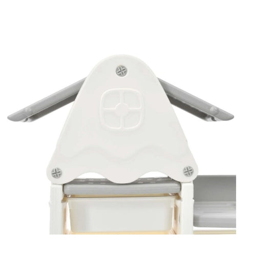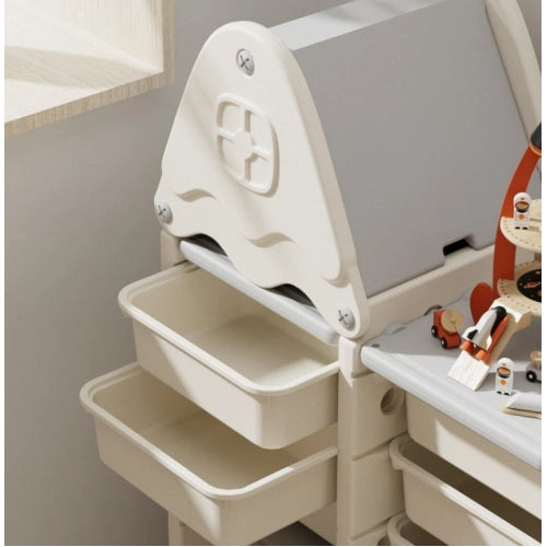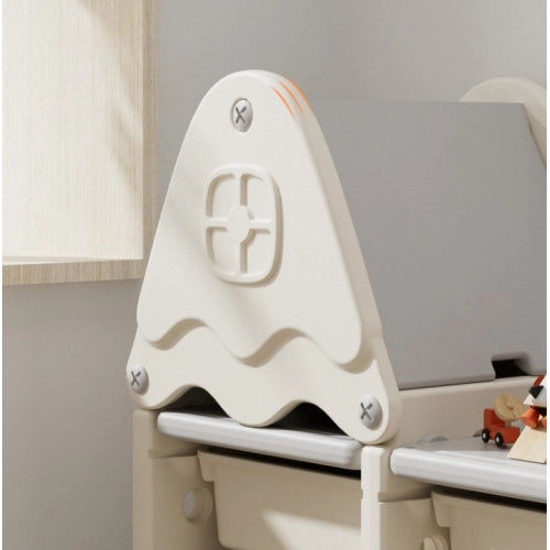 Organizator de jucării pentru casă, de culoare albăPentru ca jucăriile copilului dumneavoastră să nu fie împrăștiate prin cameră, ci mai degrabă grupate și pliate convenabil și compact în recipiente la care bebelușul va avea acces în orice moment, puteți arunca o privire la organizatorul nostru de jucării pentru casă, de culoare albă. Acesta include sertare și rafturi, care împreună formează un sistem complet pentru depozitarea lucrurilor, cărților și jucăriilor copiilor. Copilului îi va fi convenabil să își aranjeze jucăriile preferate și lucrurile copiilor mici în cutii de diferite dimensiuni. Pe rafturile superioare (30x29 cm) puteți aranja cărțile preferate. Suportul are un design neobișnuit care va atrage copilul să curețe singur lucrurile. Caracteristici: Trei sertare deschise adânc, cu dimensiunile de 30x23x20 cm; Douăsprezece sertare deschise mici, cu dimensiunile de 30x23x10 cm; Suportul pentru jucării cu sertare și rafturi este fabricat din plastic de înaltă calitate. Acest material este ecologic și ușor de curățat. Greutatea redusă a suportului și designul său stabil asigură siguranța copilului împotriva vânătăilor; Acoperiș detașabil cu spațiu de depozitare; Asamblare ușoară, nu este nevoie de unelte suplimentare; Poate fi curățat și dezinfectat; Dimensiuni raft: 101x34x110 cm (cu acoperiș). Înălțime fără acoperiș - 83 cm; Vă rugăm să rețineți că fotografiile sunt cu titlu ilustrativ. Elementele suplimentare, cum ar fi mingi, tablouri, jucării, mobilier, lămpi, perne etc. nu sunt incluse în set.