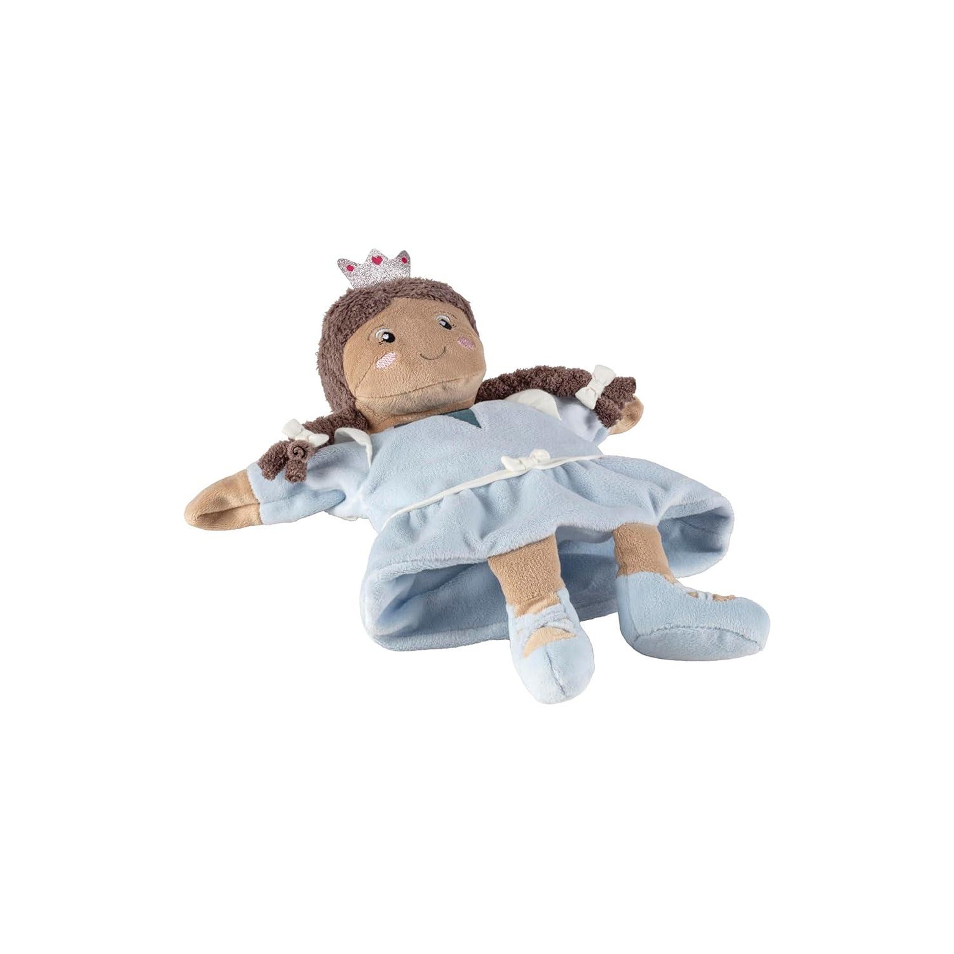 Куклата за ръце Принцеса е създадена специално за малките любители на куклен театър и ролеви игри. С магическа пръчица, корона и сладки плитки, тя ще вдъхнови вашето дете да разказва приказки и да изразява своето въображение чрез ролеви игри. Подходяща както за момичета, така и за момчета, куклата насърчава развитието на креативност и подобрява фината моторика.