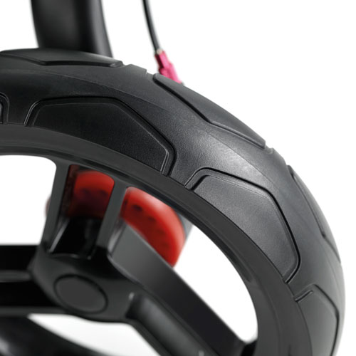 Големи колела за всякакви терени, с PU гуми. Предните колела се въртят на 360° с опция за застопоряване от въртене, в зависимост от терена.