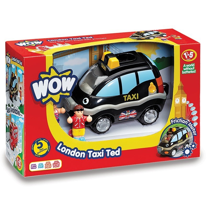 Du-ți pasagerii care așteaptă prin Londra cu stil, cu Taxiul Londrei al lui Ted. Folosește mâna șoferului pentru a apăsa butonul galben de pe lateralul mașinii pentru a deschide acoperișul. Apoi, așează șoferul de taxi și clientul său în locurile desemnate. Apasă-l pe Ted pentru a conduce taxiul și urmărește cum acesta câștigă treptat energie. Jucăria nici măcar nu are nevoie de baterii pentru a funcționa!