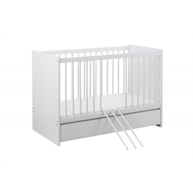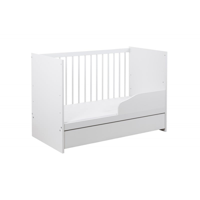Sertar spațios din scândură de mobilier în culoarea pătuțului.