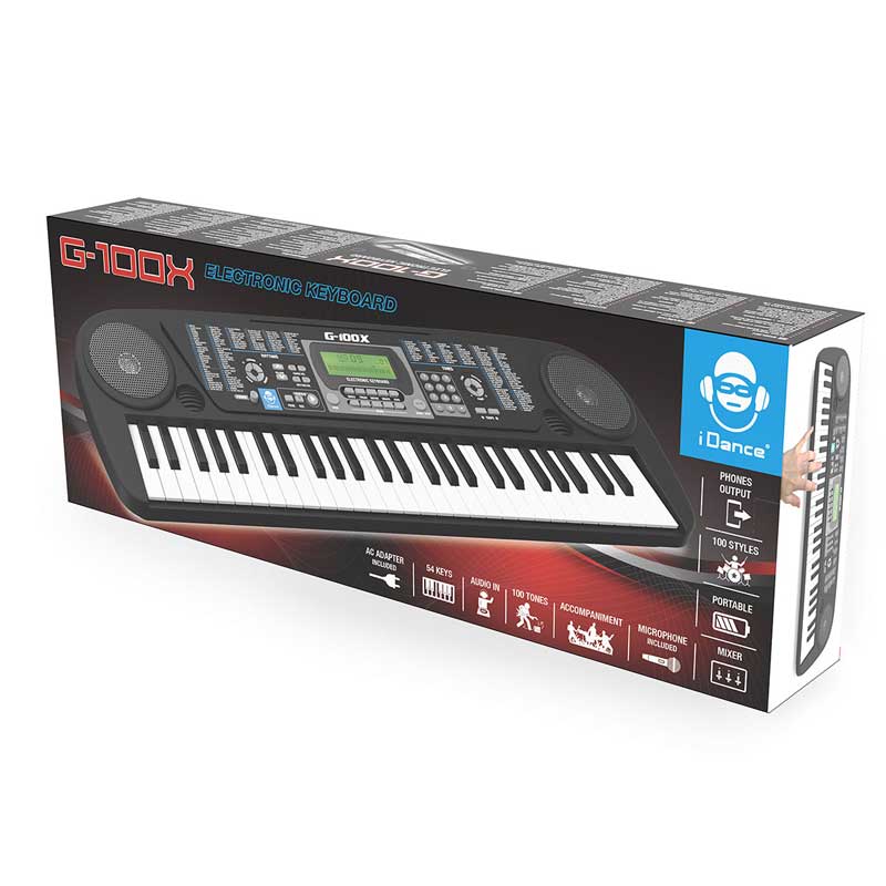 Învață să cânți melodiile și melodiile tale preferate cu claviatura electronică iDance ! Aceasta dispune de o claviatură cu 54 de taste, un microfon cu cablu și un adaptor de încărcare rapidă. Pentru o mai mare comoditate, claviatura electronică poate funcționa și cu baterii. Conectează telefonul sau tableta la portul audio în timp ce interpretezi melodii folosind microfonul pentru o experiență și mai memorabilă. Claviatura iese în evidență cu 100 de stiluri diferite, 100 de tonuri și o selecție largă de acompaniamente. Alege acordurile potrivite, adaugă efecte cu modul remix și înregistrează cele mai bune performanțe cu funcția „înregistrare”. Folosește modul de învățare pentru a stăpâni câteva acorduri sau experimentează cu îndrăzneală cu diferite stiluri: echo, vibrato și altele. Creează melodii controlând cu ușurință ritmul, tonurile și demo-ul acestora, folosind butoanele de pe claviatură. Cufundă-te în crearea muzicii, mixează și interpretează melodiile tale preferate în timp ce te distrezi cu prietenii tăi!