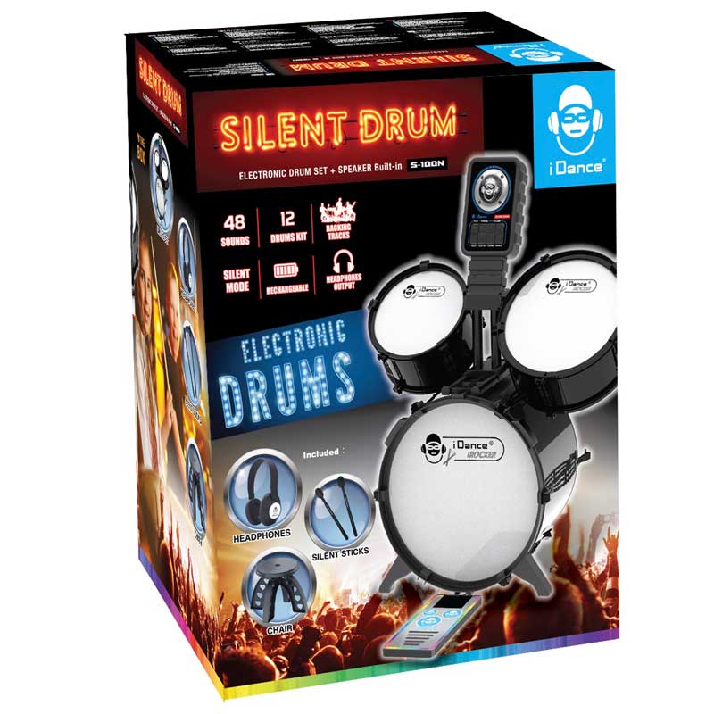Стани най-добрият барабанист с електрическите брабани от iDance! Комплектът включва три броя барабани, звуков модул, пластмасово стол, палки, слушалки и USB кабел за зареждане. Свържи сета и се забавлявай с многобройните му опции. Експериментирай с включените тракове и различните стилове - рок, електро, конга и други. Използвай слушалките с опция тих режим на свирене, с цел да избегнеш силния звук. Включи ефектите - ехо, повторение и други, за да създадеш най-добрите бийтове. Столът ще ти донесе комфорт при свирене, а компактните палки ще помогнат за точния бас. Свържи твоя телефон или таблет чрез aux-in порта за още по-голямо разнообразие на мелодии. Забавлявай се с детските електрически барабани и създайте рок група с твоите приятели.