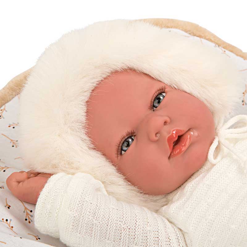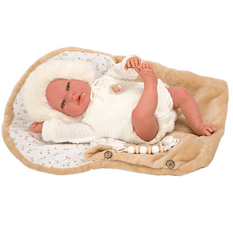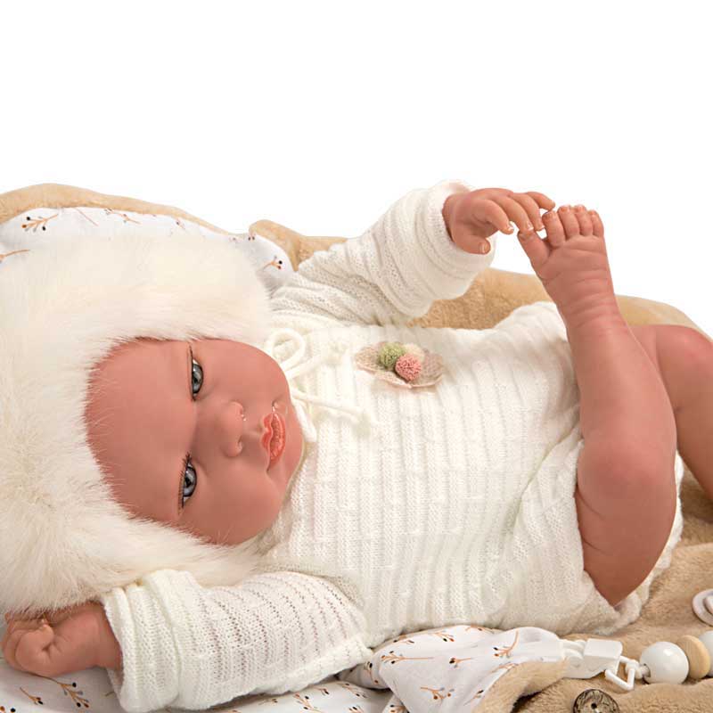 Fiecare fetiță își găsește bucuria în jocurile mamei și bebelușului, unde dragostea și grija stau la baza lor. Păpușa reborn baby Alexandra a fost creată pentru a contribui la aceste momente de lipsă de griji și fericire. Realizată manual în Spania, ea este o reprezentantă impresionantă a colecției „Reborn” a celebrului producător Arias. De mai bine de 40 de ani, acest brand a încântat cu jucăriile sale, surprinzând magia copilăriei cu atenție la fiecare detaliu. Trăsăturile realiste ale Alexandrei - de la pielea roz și obrajii dolofani până la ochii expresivi - fac experiența alături de ea extrem de captivantă. Cu o combinație între un corp moale pentru îmbrățișări și picioare și brațe din vinil, moi la atingere, păpușa vie Alexandra va deveni o parte integrantă a jocurilor fetiței tale. Iar parfumul de vanilie care emană ușor din ea adaugă o altă dimensiune sentimentului de realitate și confort. Caracteristica specială a păpușii reborn baby este că cântărește la fel de mult ca un bebeluș adevărat. Îmbrăcată într-o salopetă albă cu glugă pufoasă și un sac de dormit bej moale, Alexandra nu este doar o păpușă pentru joacă acasă, ci și o companionă minunată pentru jocurile în aer liber. Cu siguranță va atrage atenția tuturor celor din parc.