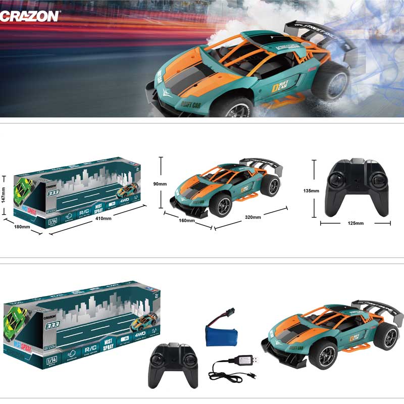 Toți micii piloți de curse aleg o mașină sport pentru drifting de la Crazon ! Cu o suspensie completă 4x4, anvelope de calitate și tracțiune stabilă pe orice suprafață, mașina ta este gata de drift! Cu funcția de ceață spectaculoasă inclusă, vei ului concurența cu un singur buton. Controlează cu ușurință fiecare mișcare, folosind telecomanda, concepută cu un semnal puternic - până la 25 m . Mașina este fabricată din material ABS de înaltă clasă, care este rezistent la impact și protejează toate componentele interne. Designul este modern, cu elemente albastru-portocaliu și o prezență memorabilă pe fiecare pistă. Modelul se mișcă în 4 direcții principale și execută manevre riscante cu ușurință. Mașinile telecomandate au multe aspecte pozitive - dezvoltă orientarea, percepția spațială și abilitățile motorii fine la micii șoferi. Alege mașina de drift Crazon și câștigă cea mai periculoasă cursă! Caracteristici: