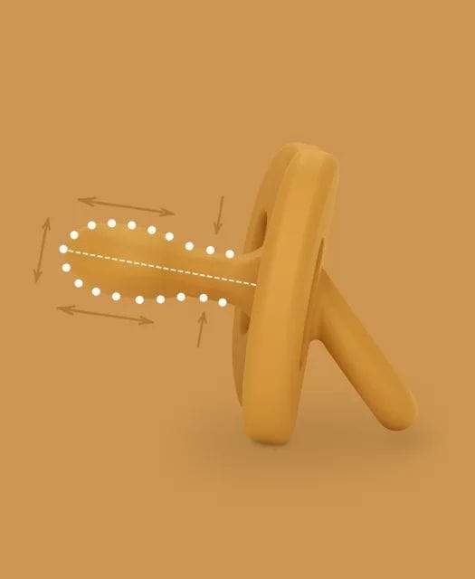 • Silicon flexibil și extrem de moale: Imită textura și forma mamelonului mamei, adaptându-se perfect formei palatului bebelușului.