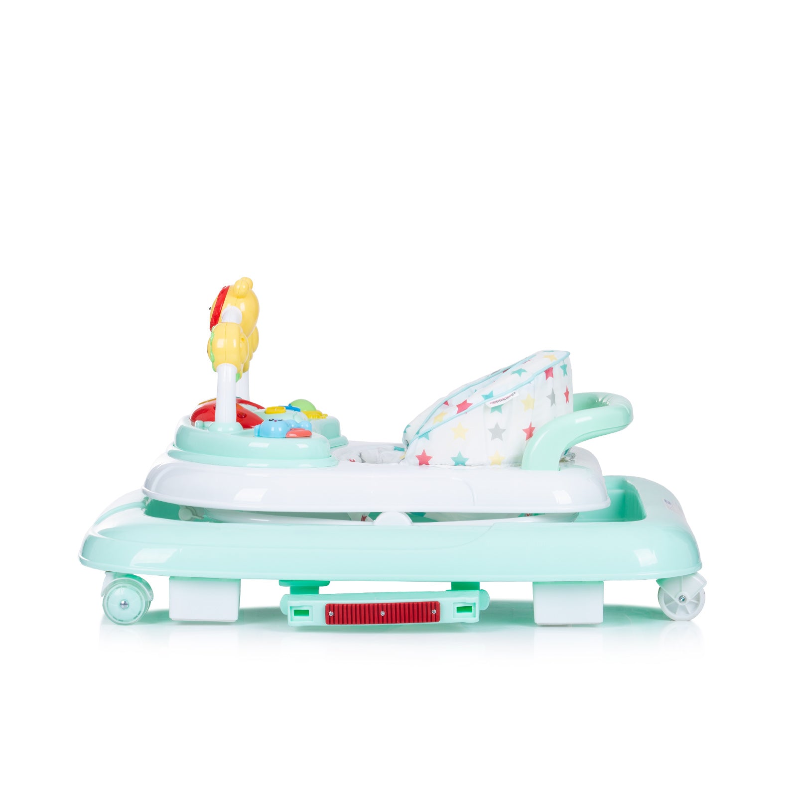 - Un produs multifuncțional care poate fi utilizat în 4 moduri diferite - ca premergător, centru de joacă, leagăn și jucărie de împins;