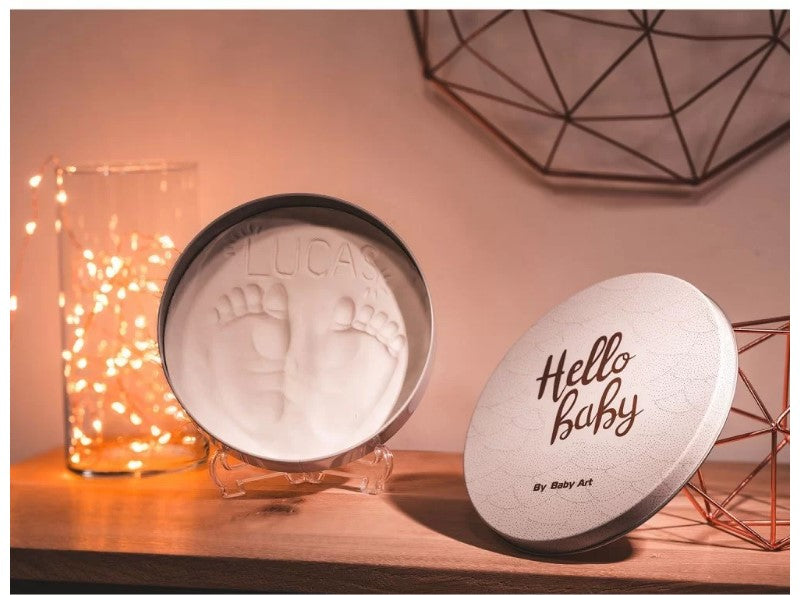 Великолепен подарък и уникален спомен за семейството със сувенирната кутия за отпечатък Baby Art. Магичната кутия за отпечатък е оригинална идея за създаване на очарователен спомен от мъничките ръчички или крачета на бебето, лесно, бързо и без да нацапате наоколо. BABY ART Magic Box Shiny Vibes може да се изложи във витрина или на рафт с включената в комплекта дискретна витрина или на рафт с включената в комплекта дискретна витрина или на рафт Декоративната кутия с модерен дизайн с елегантни златни елементи ще внесе още повече повече настро.