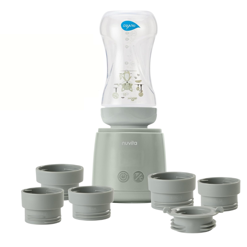 Mix70 от Nuvita е съвместим с всички основни модели и марки шишета, благодарение на 6-те адаптера, включени в комплекта*.