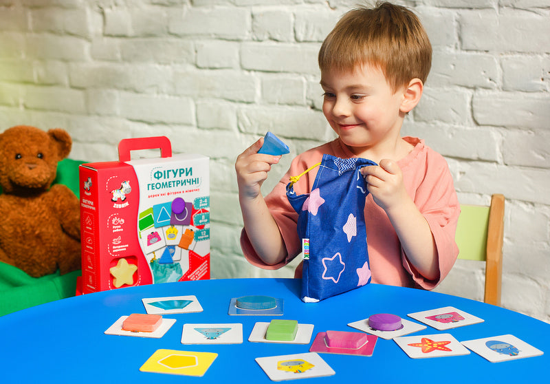 Joc educativ cu figurine din lemn, culori și forme într-o pungă 22x6x25