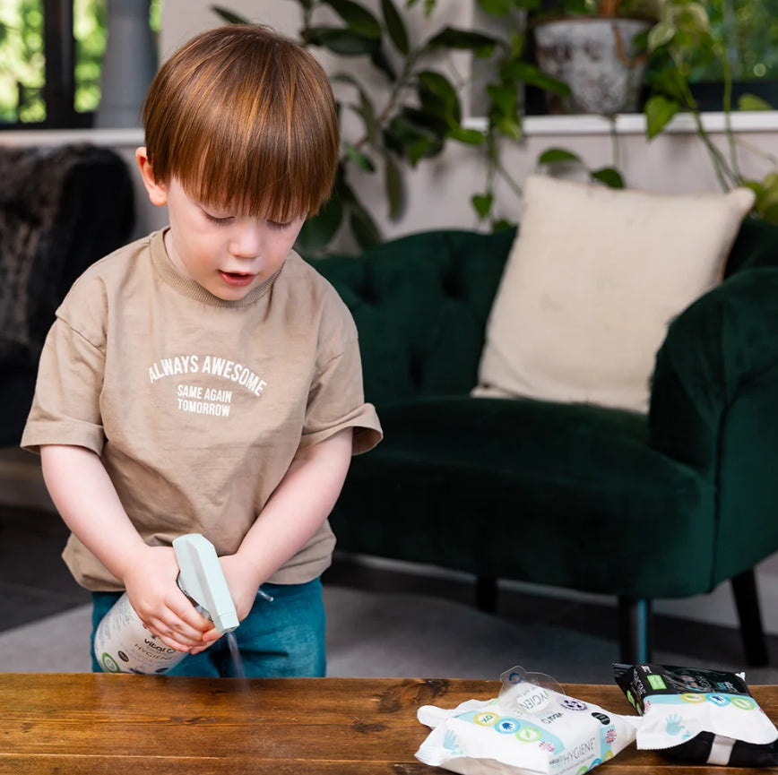 Хипоалергенна формула, нежна към кожата и мощна срещу бактериите. Произведена без алкохол, аромати или вредни съставки - само пречистена вода и хипохлорна киселина. Използвайте за почистване на мръсни ръце, повърхности, плодове, паднали на земята предмети като залъгалки, играчки и др. Напръскайте директно върху кожата за антибактериално почистване у дома и в движение.