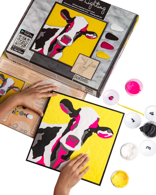 Creați o imagine 3D din Modelin cu ramă și instrucțiuni, dimensiunea imaginii 30 x 30 cm, vacă 40 x 6 x 33 cm
