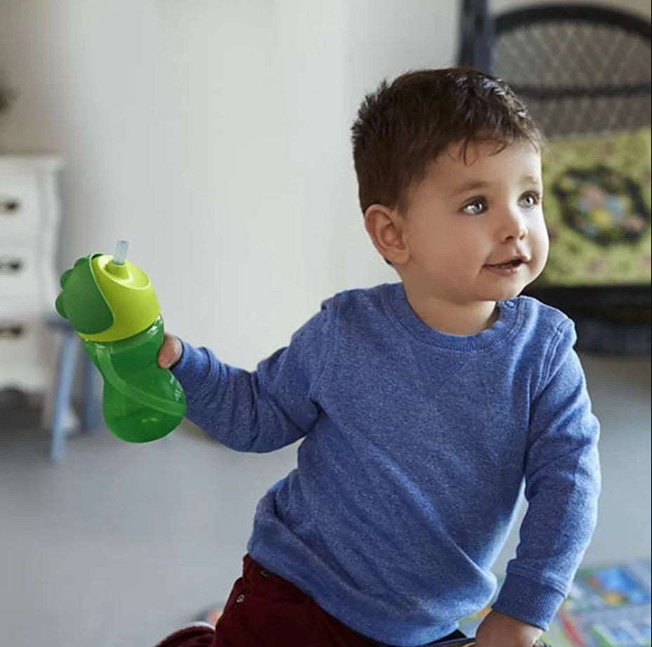 Partea inferioară a paiului se îndoaie astfel încât acesta să ajungă ușor la lichid, permițând copilului să bea într-o poziție naturală.