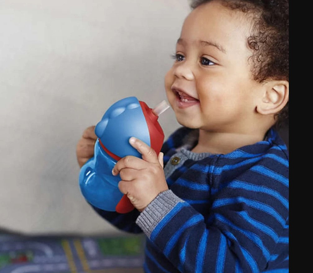 Partea inferioară a paiului se îndoaie astfel încât acesta să ajungă ușor la lichid, permițând copilului să bea într-o poziție naturală.