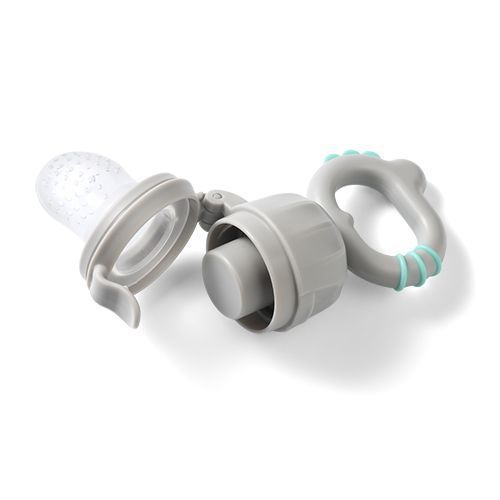 Un jucărie de dentiție este un asistent indispensabil în învățarea bebelușilor să mănânce. Este ideal pentru a extinde dieta copilului dumneavoastră și a-l încuraja să încerce noi delicatese. Datorită jucăriei de dentiție, îi puteți oferi în siguranță copilului dumneavoastră legume proaspete, fructe și alte alimente. Siliconul durabil este ușor de curățat și asigură siguranță la mușcarea alimentelor, eliminând riscul de sufocare. În plus, jucăria de dentiție va calma ușor gingiile bebelușului în timpul erupției dentare și va ameliora gingiile dureroase. Datorită dimensiunilor sale compacte, puteți lua jucăria de dentiție oriunde ați merge, iar mânerul confortabil vă va încuraja copilul să mănânce independent.