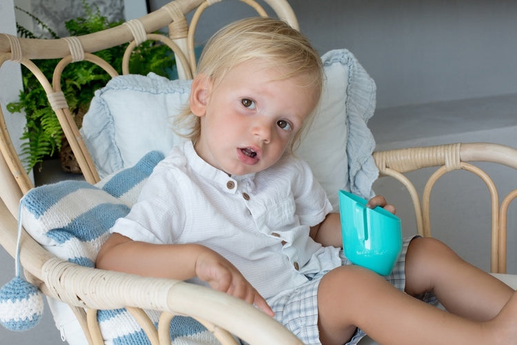 DOIDY CUP este o cană înclinată unică pentru antrenarea bebelușilor în timpul înțărcării cu biberonul. Designul înclinat permite o mișcare mai naturală în sus și în jos a mâinilor, învățându-i pe bebeluși să bea dintr-o cană deschisă și cum să o poziționeze corect.
