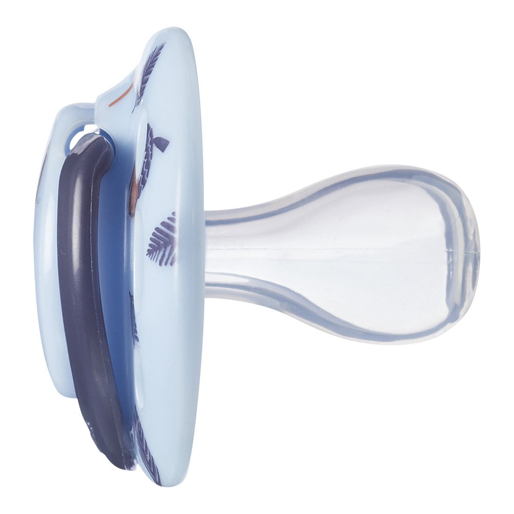 • Design ortodontic - Tetina ovală ortodontică simetrică este ventilată, astfel încât se pliază mai ușor decât tetinele tradiționale umplute cu aer, reducând presiunea asupra dinților și gingiilor în curs de dezvoltare ale bebelușului. Tetina simetrică din silicon nu are o parte „greșită” și se va potrivi întotdeauna corect în gura bebelușului.