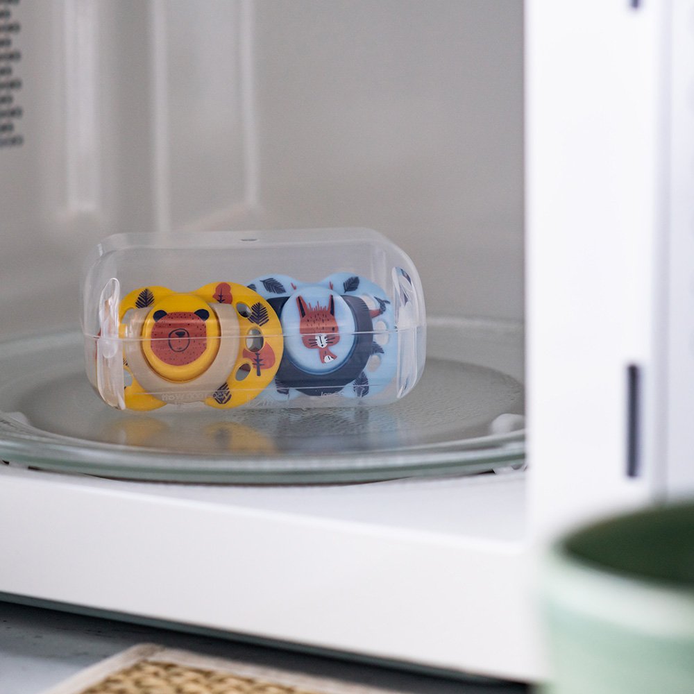 Acceptate de 98% (1) dintre bebeluși, suzetele Fun Friends au un design ortodontic simetric și tetine din silicon moi, flexibile, dar extrem de durabile. Stilul tradițional de scut, cu modele luminoase și jucăușe, cu personaje distractive, este perfect pentru utilizare oricând și oriunde.
