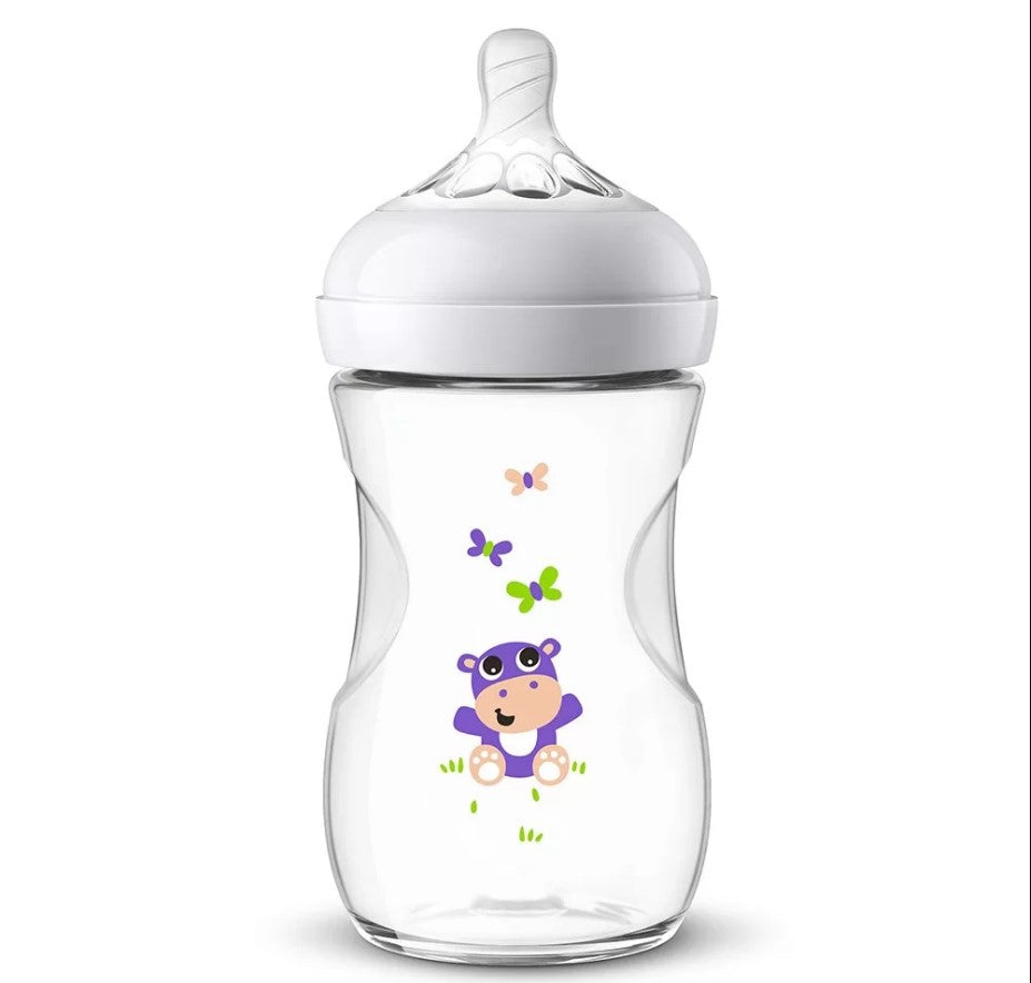 Biberon Philips AVENT EDIȚIE LIMITATĂ Natural 260 ml PP, decorațiune HIPPO, cu tetină lentă Natural 1m+ (1 orificiu)