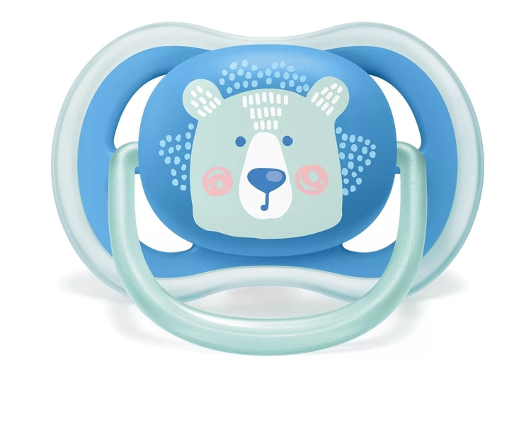 Suzetele Philips Avent - Ultra Air au un scut cu 4 orificii mari de aer pentru un confort sporit și pentru a reduce iritația din jurul gurii pielii delicate a bebelușului. Marginile rotunjite ale bazei reduc presiunea în timpul suptului.