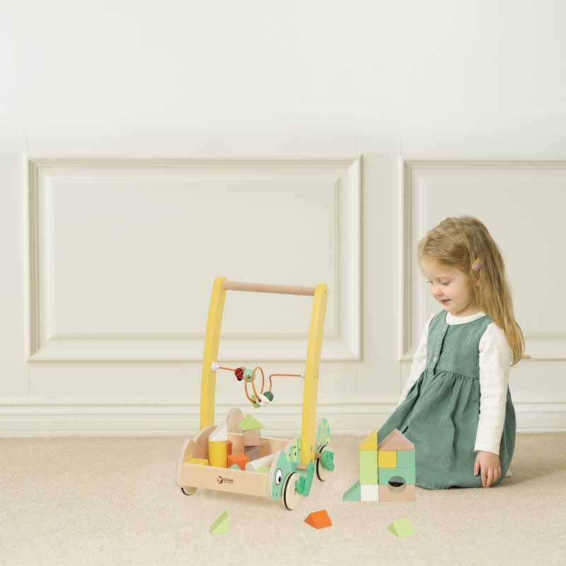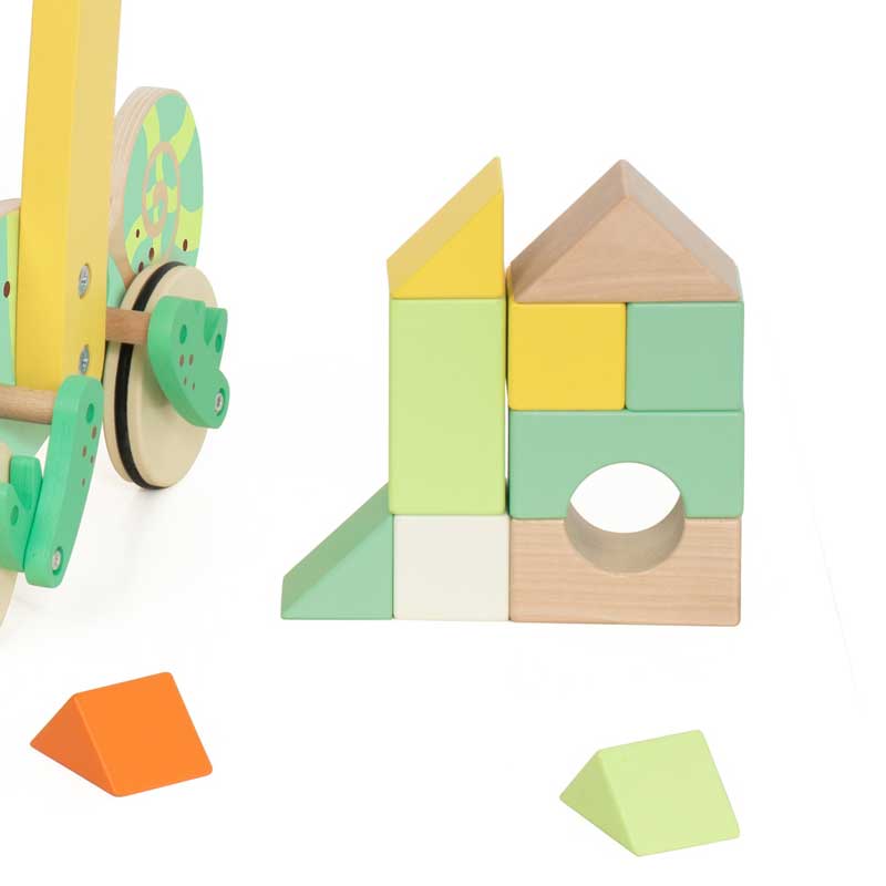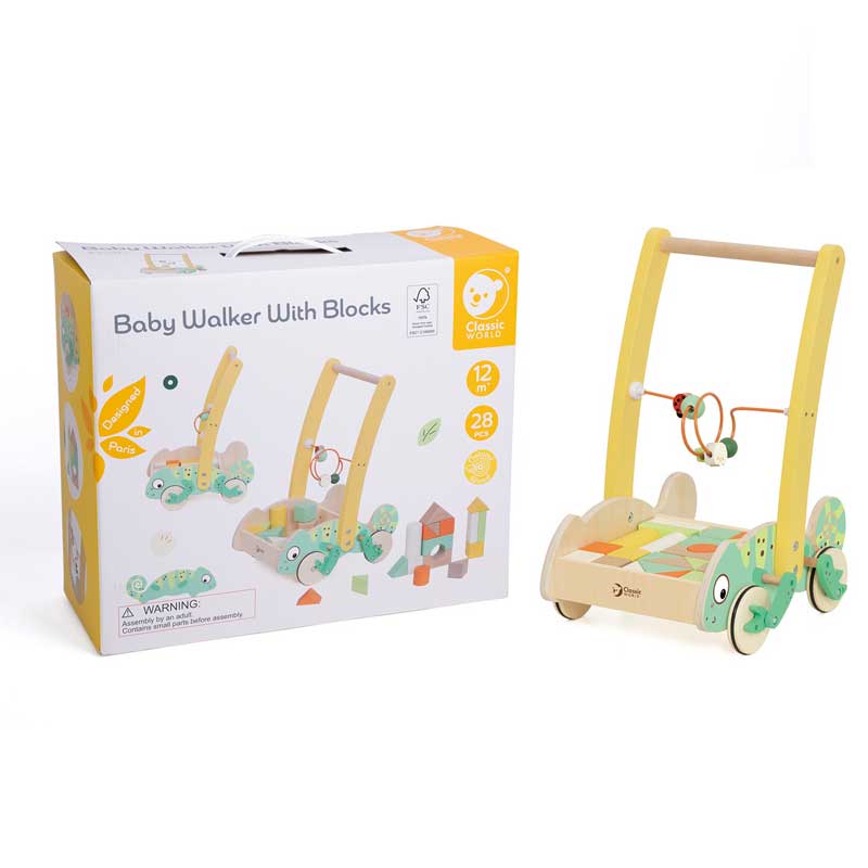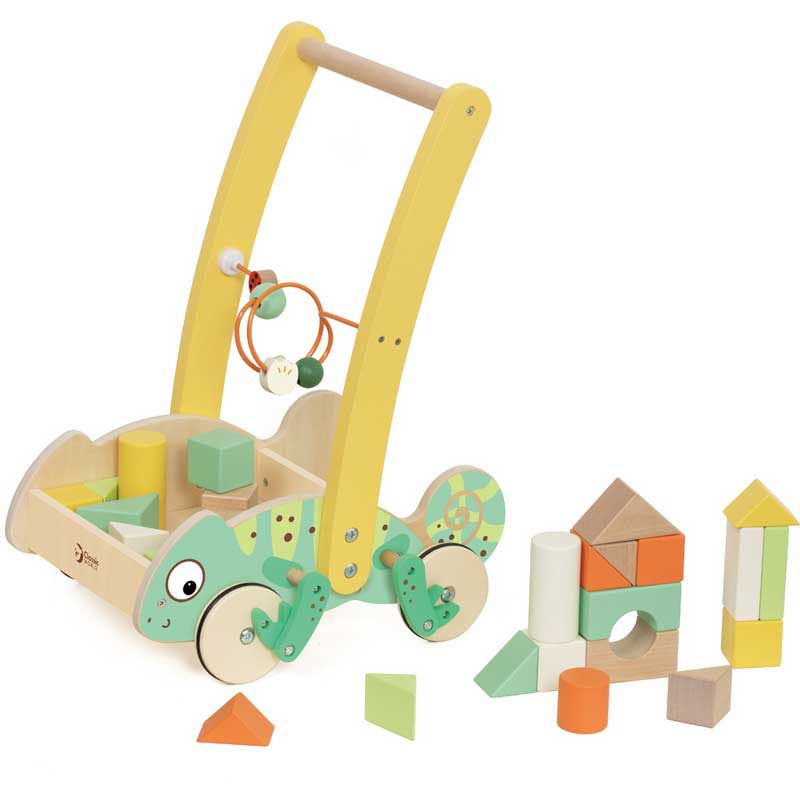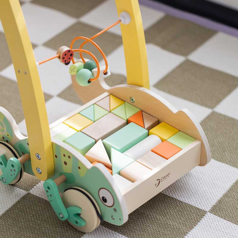 Дървен уокър Classic World Хамелеон с дървени блокчета за бебета