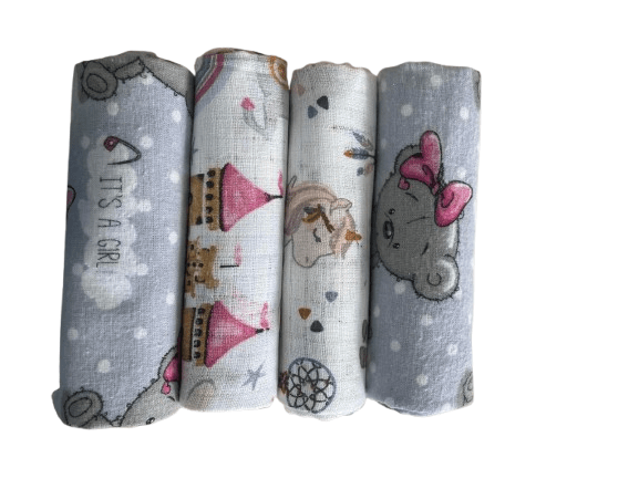 Galix-комплект пелени 4бр / 2 бархет+2 муселин/ момиче