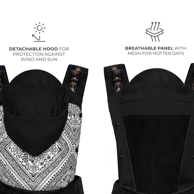 HUGGY е идеален за всеки сезон. Когато времето се затопли, платненият панел може лесно да се отстрани и вместо него да се използва дишащата мрежа.