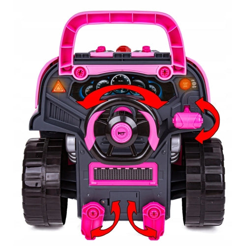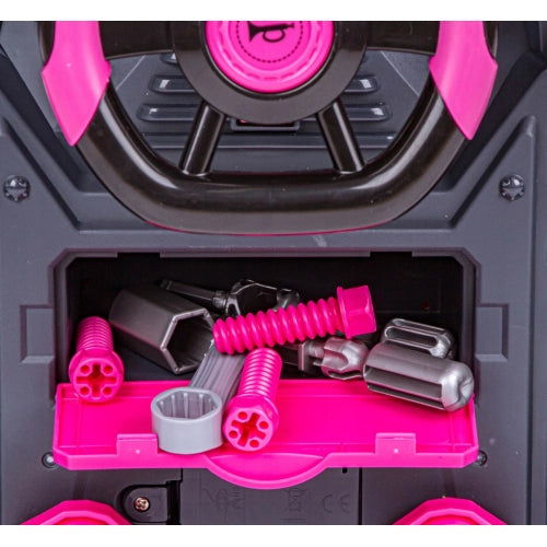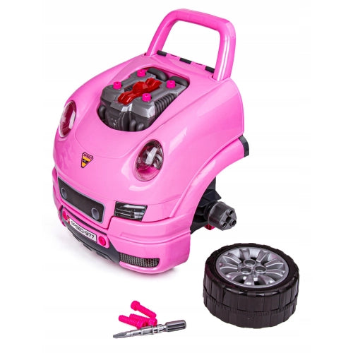 Un kit mare de asamblare și dezasamblare în formă de față de mașină. Kitul are 61 de elemente, datorită cărora copilul care visează să aibă propriul atelier va fi încântat. Jucăria are o capotă rabatabilă, volan și bord. În compartimentul de depozitare situat sub volan, micul mecanic va găsi sculele, butoanele sau șuruburile necesare, datorită cărora va putea face numeroase reparații și inspecții ale mașinii sale. În plus, distracția va deveni mai atractivă cu sunetele motorului, claxonului sau farurilor intermitente, care pot fi pornite cu telecomanda. Caracteristici: Jucărie 2 în 1 - mașină și atelier Partea din față a mașinii cu capotă ridicată și volan și bord pe cealaltă parte Numeroase elemente pentru asamblare și dezasamblare Compartiment pentru accesorii și unelte Cric pentru demontarea ușoară a roților Efecte luminoase și sonore: sunete ale motorului, claxon și faruri intermitente Telecomandă care vă permite să controlați modulele de lumină și sunet Calitate înaltă Dimensiuni produs: 40 x 39 x 47 cm Destinat copiilor de la 3 ani, Mașina necesită 3 baterii AA de 1,5 V pentru a funcționa (nu sunt incluse) Telecomanda este echipată cu o baterie CR2025 de 3V (inclusă)