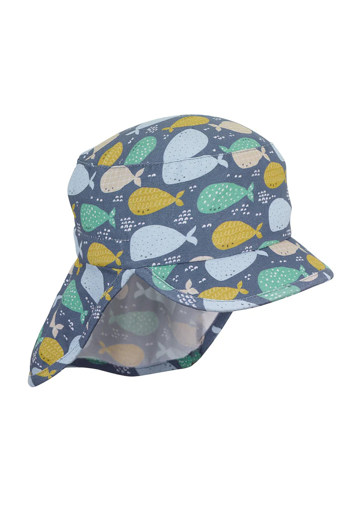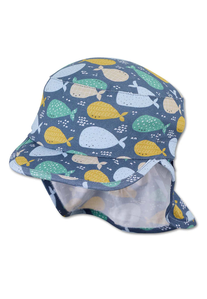 Детска шапка от трико с платка на врата и принт на китове , UV50+, Sterntaler, 49 см. / 12-18 м.