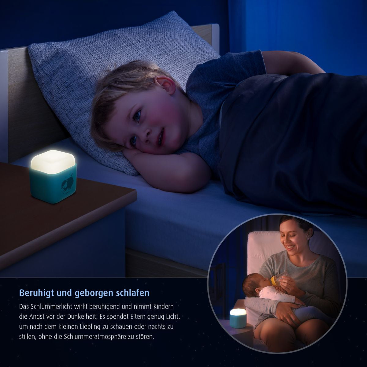 Две различни нива на яркост гарантират, че нощната светлина дава точно толкова светлина, колкото е необходимо. Меката настройка на светлината създава успокояваща атмосфера, без да нарушава съня. В същото време дава достатъчно светлина за нощно хранене и смяна на пелени. Неговата настройка за по-ярка светлина позволява игра или четене.